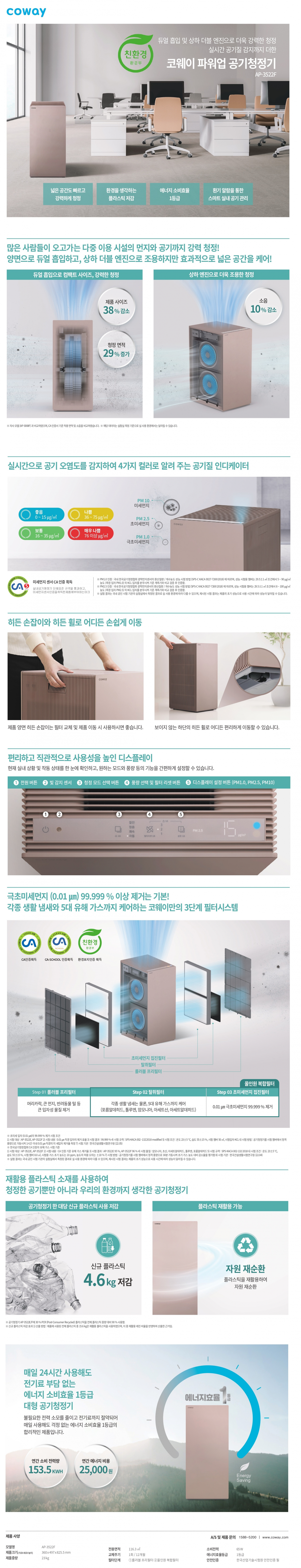 코웨이 파워업 공기청정기[AP-3522F] 2개월 방문관리